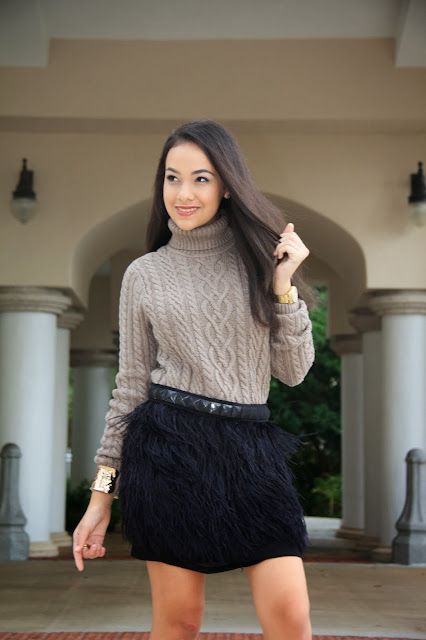 Love Michael Kors and this feathered skirt is beautiful. Love the way you paired it with this chunky knit sweater.