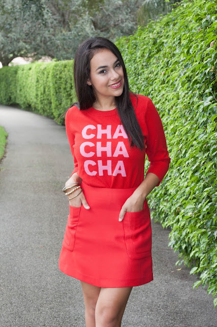 So, this magenta blouse has been one of my favorite go-to blouses. It's light, airy, and vibrant. Thanks to the shape and structure, it is very versatile. I paired it with the skort that I've been wearing a lot recently. P.S. it's on a major sale for $44.50 (can't pass that offer up)! I love the tweed fabric because it juxtaposes the sheer fabric of the blouse. With a sunset clutch and heeled sandals, this look is complete and ready to be taken out to a fun day in the city, at work, or at a lunch date.